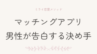 マッチングアプリ マッチングアプリで男性が告白を決める瞬間|決め手になる女性の共通点 マッチングアプリで男性が告白を決める瞬間とは?テクニックではなく、男性が「この人を失いたくない」と感じる女性の共通点を解説します。 2025.12.16 マッチングアプリ